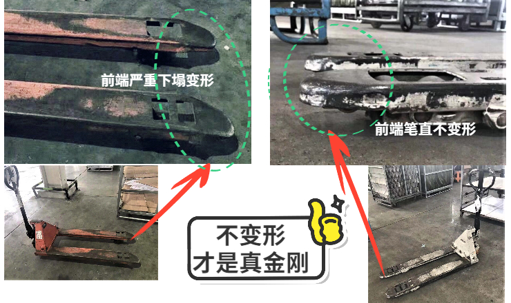 本款手動叉車充分具備經(jīng)久耐用、貨叉前段不變形、操作輕松三大特點(diǎn)